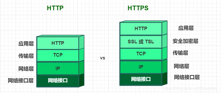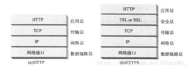 TCP数据是通过名为IP数据报的小数据块来分发的,所以HTTP就是"HTTP over TCP over IP"这个协议栈的顶层了,而HTTPS则是HTTP的安全版本,即在HTTP和TCP之间插入了一个密码加密层(TLS或SSL)。