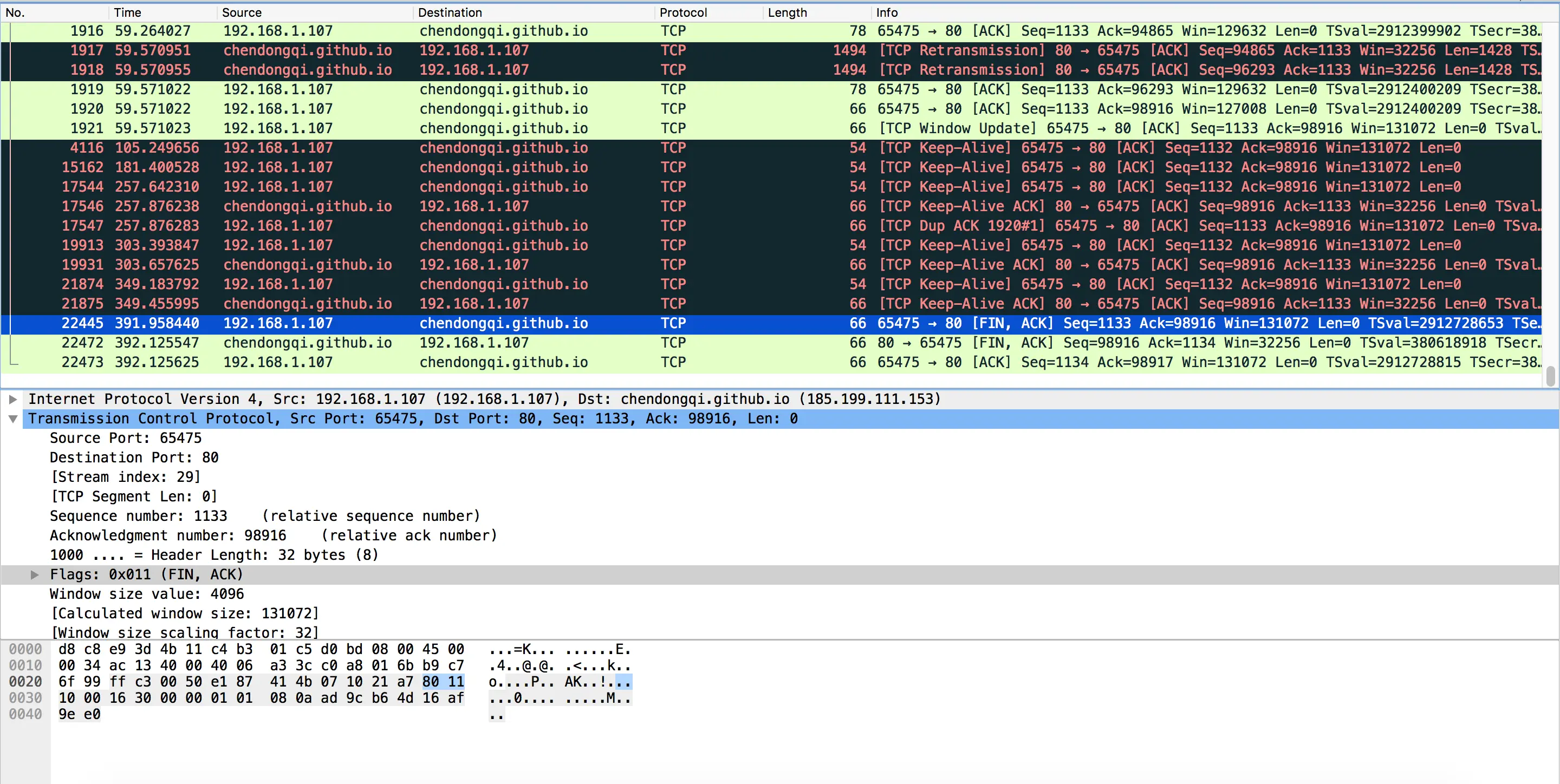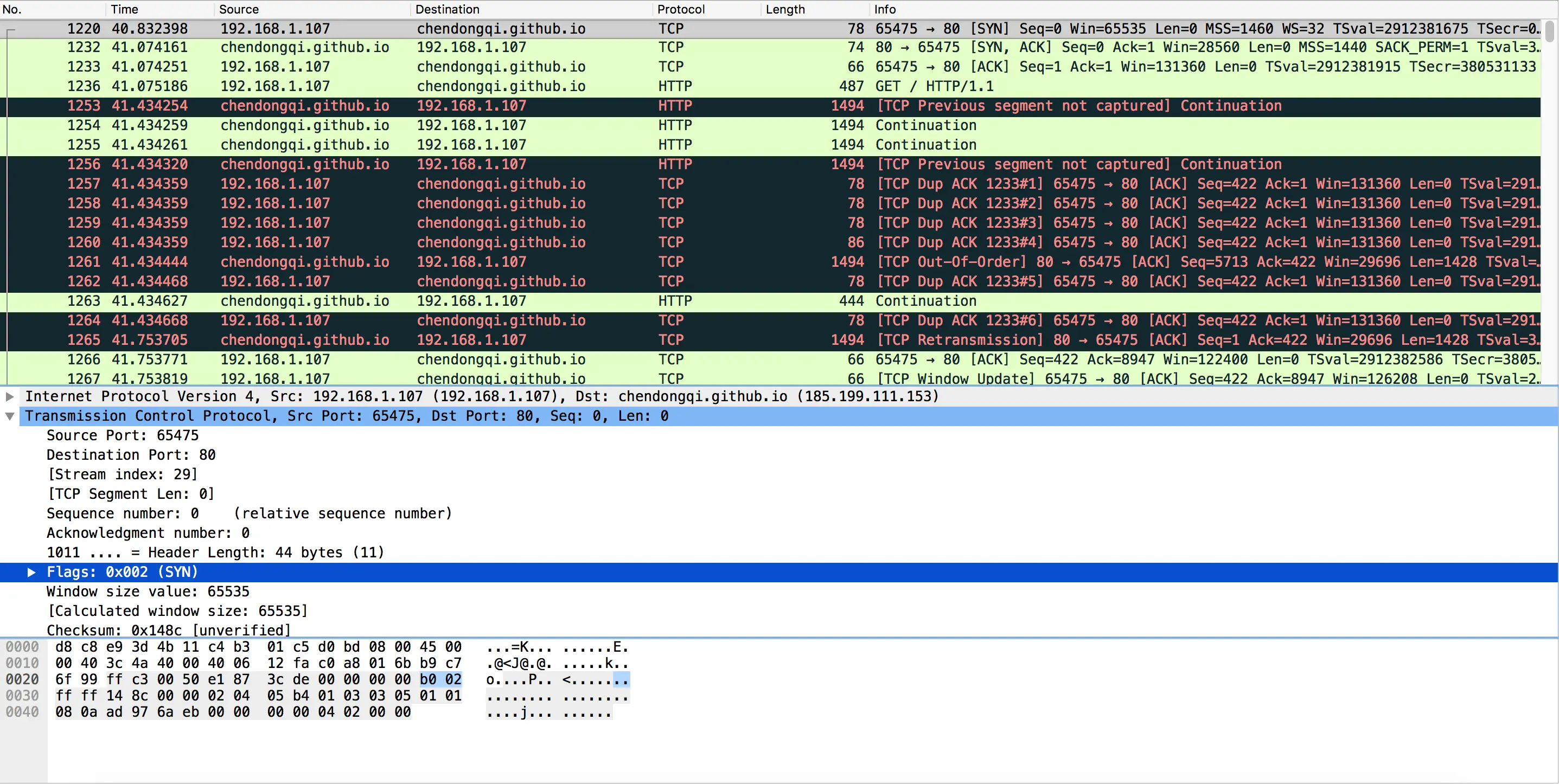 打开wireshark, 打开浏览器输入:chendongqi.me/
