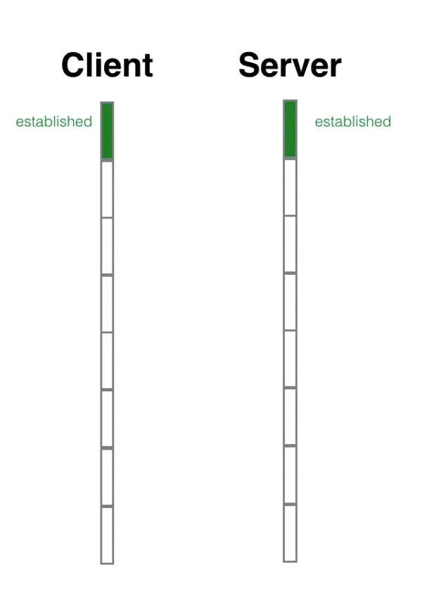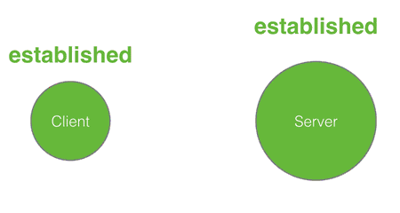 C端接到S端的确认包(会首先检查是否是回应自己第一次握手发的请求包,即会检查Ack是否等于x+1,如果确认操作系统则为改TCP连接分配缓存和变量)之后再向S端发送确认包([ACK] Ack=y+1,Seq=x+1)(ACK报文段可以携带数据,不携带数据则不消耗Seq),S端也会检查(检查是否是回应自己第二次握手发的确认包,即会检查Ack是否等于y+1,如果确认操作系统则为改TCP连接分配缓存和变量),完成第三次握手,TCP连接已经建立,C端进入ESTABLISHED状态,最后S端收到C端的确认包后也进入ESTABLISHED状态,双方开始再次利用TCP包进行数据传输。