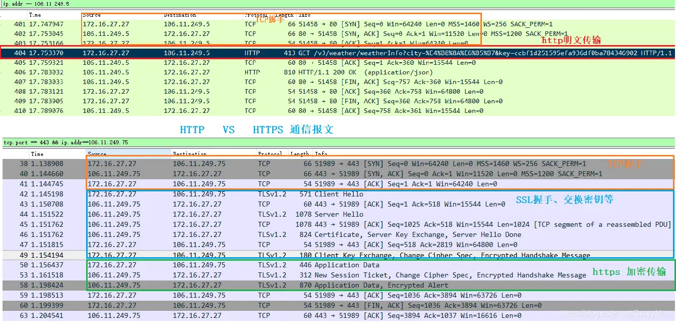 为了数据传输的安全,HTTPS在HTTP的基础上加入了SSL\TSL协议,SSL\TSL依靠CA证书来验证服务器的身份,并为Client和Server此次通信进行加密: