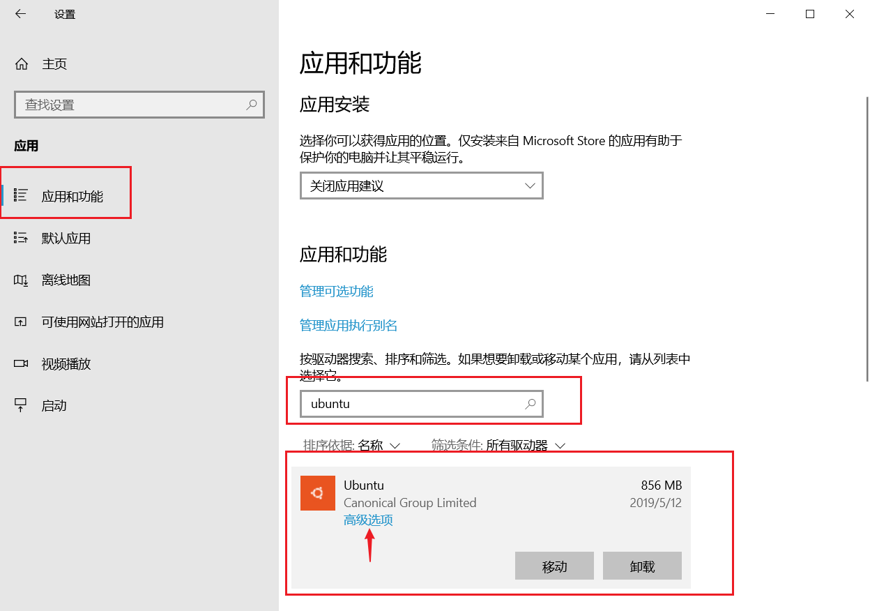 搜索并找到 Ubuntu 应用,点击选择