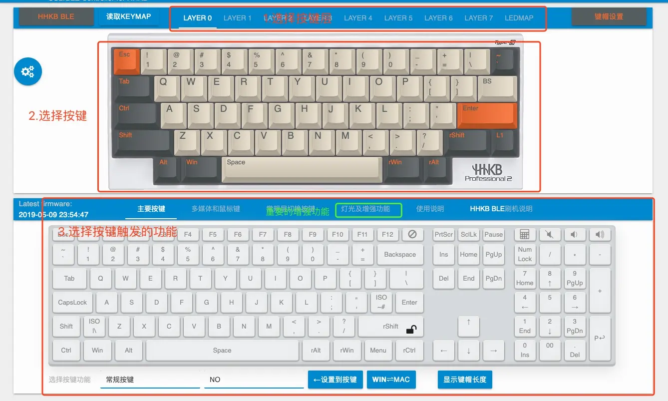 不过芯片上自带的默认配列不一定是我们想要的,我们可以通过自定义来实现我们想要的配列方案。当然,官方也提供了默认的HHKB配列方案给用户直接下载使用。