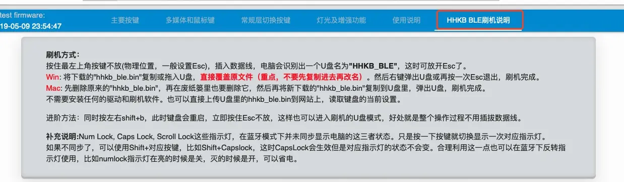下面是“HHKB BLE刷机说明”的一个截图。