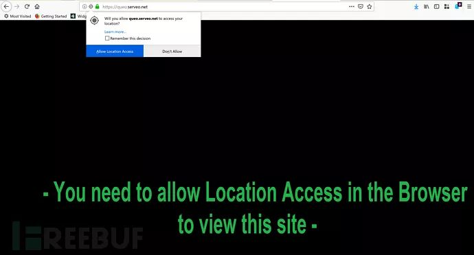 需要注意的是,这个URL地址是根据不同的用户随机生成的,所有生成的地址都为serveo.net域名下的子域名。我们可以在网络钓鱼活动中通过电子邮件或其他方式把这个URL地址发给你的目标用户,用户点击访问后将看到如下图所示的界面: