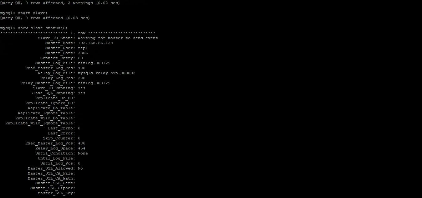 change master to master_host='192.168.248.128',master_port=3306,master_user='rep1',master_password='123',master_log_file='binlog.000001',master_log_pos=120;