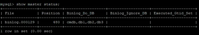 3.查看主服务器当前二进制日志名和偏移量,这个操作的目的是为了在从数据库启动后,从这个点开始进行数据的恢复:
