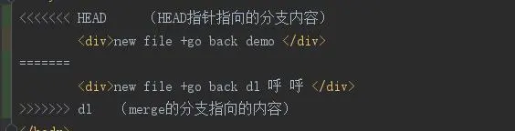 如果我切换到分支dl ,修改了master 原本哪行的代码,提交.然后再切换到master.我不知道demo修改了这个文件.我也修改这一行的代码,并提交.好了,"两个分支相同文件相同位置的的不同操作" 我这个时候就在master merge dl 或在 dl上merge master. 冲突!!! 不解决冲突是没法提交和切换到别的分支的. 反正这个冲突后的文件必须被改动一下.