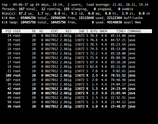第一步: top -Hp 查看占用CPU进程