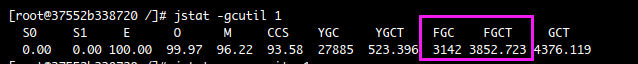 第三步: jstat -gcutil 查看gc执行情况,发现