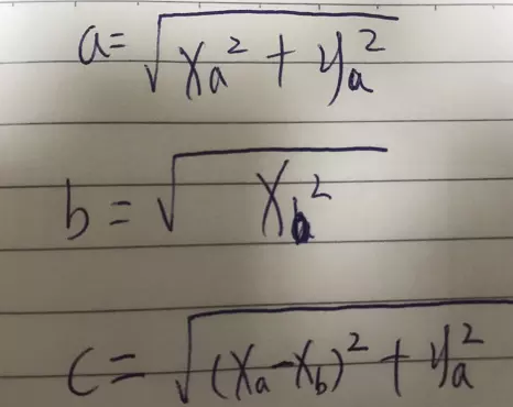 此时a=(xa,ya),b=(xb,0),那么怎么计算各边长的长度呢?
