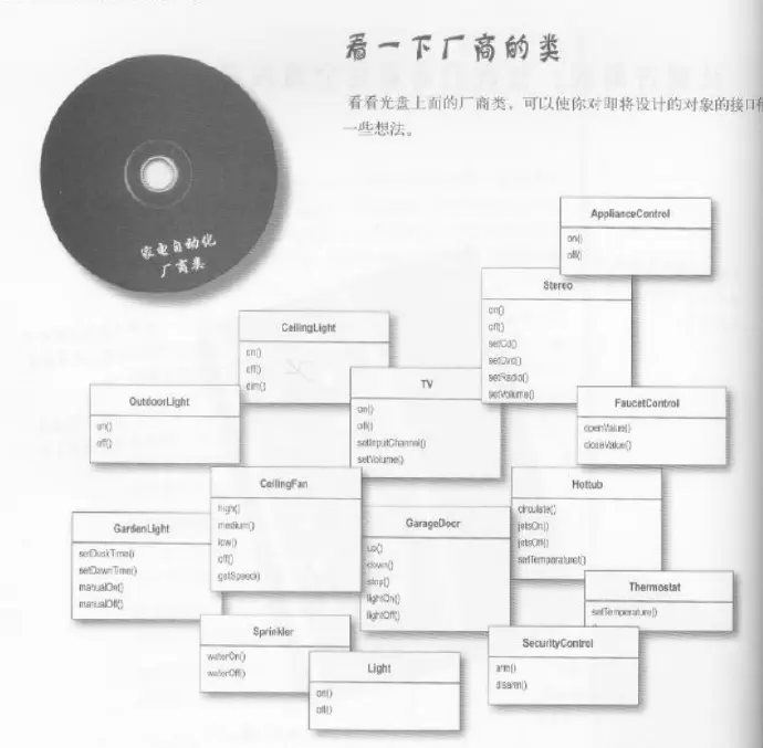这个类确实不少呀,而且接口也各有差异。还有更麻烦的,随着家电数量的增加,这样的类还会越来越多。那么,如何设计一个遥控器API就变得很有挑战性了是吧。