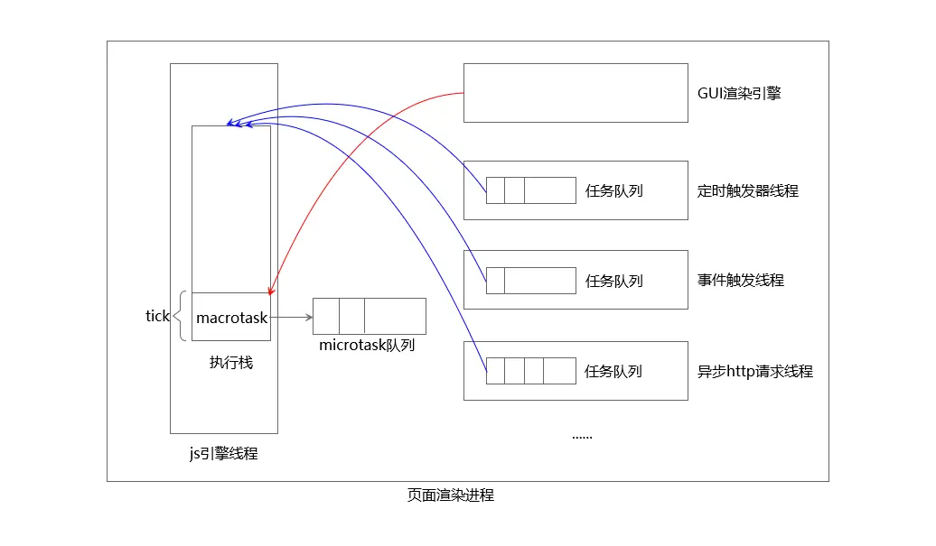 其中需要注意的是GUI 渲染线程去渲染页面也是以 macrotask 的形式进行的,这个之后详谈。