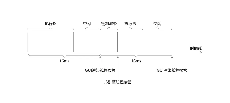 1、JS 引擎线程顺序执行执行栈中的任务,以一个 macrotask 为单位,在单个宏任务没有处理完之前,JS 引擎线程不会将程序交由GUI 渲染线程接管。也就是说耗时的任务会阻塞渲染,导致页面卡顿的情况发生。典型浏览器一般1秒钟插入60个渲染帧,也就是说16ms进行一次渲染,单个任务超过16ms,如果渲染树发生改变将得不到及时更新渲染。