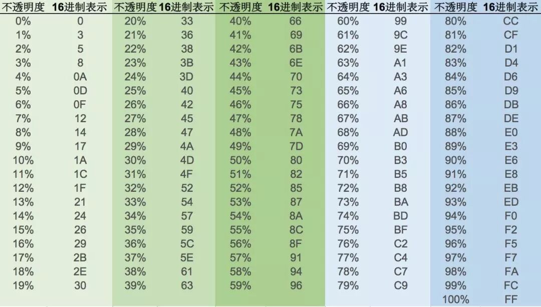 最后拼接成ARGB格式,即最终的颜色值: #99FFFFFF
