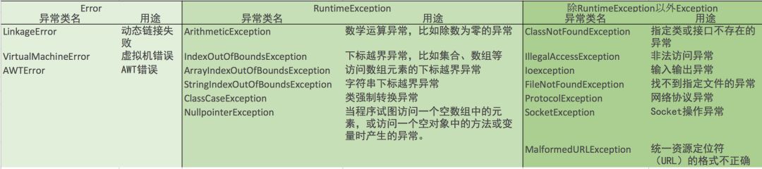附:常见的异常及其含义如图