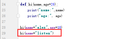 调用函数时,默认参数的值如果没有传入,则被认为是默认值。下例会打印默认的age,如果age没有被传入: