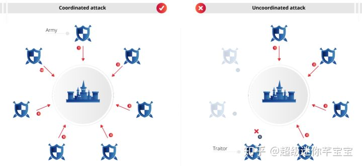 而拜占庭类错误(BFT),是把整个分布式网络放到了更大的环境中去看,除了物理硬件之外,还考虑了一些“人”的因素。毕竟,机器是不会作恶的,作恶的只有人。假如我们所处的分布式网络是较为开放的网络,比如行业内几十上百家公司组成的联盟网络;或者是完全开放的网络,比如任何人都可以随意接入到网络中;而节点机器和上面部署的软件也是由各个公司或个人自己提供和部署的,那么如果利益足够大,很可能会有人对网络中的某个节点发起DDoS攻击、故意篡改软件代码改变其执行逻辑、甚至可能故意篡改磁盘上持久化的数据。显然,我们此时面临的挑战更大了,我们除了要考虑通信网络和机器硬件的不可靠之外,还必须要考虑和应对系统中的“捣乱者”。