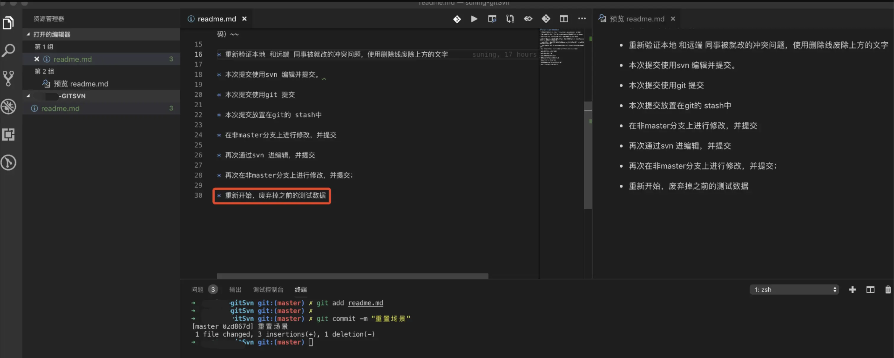 场景1: 新建一个Git svn 库,然后提交修改的代码 「注意」此种操作场景比较理想,这里假设的是svn 端在修改期间没有新的人提交修改。