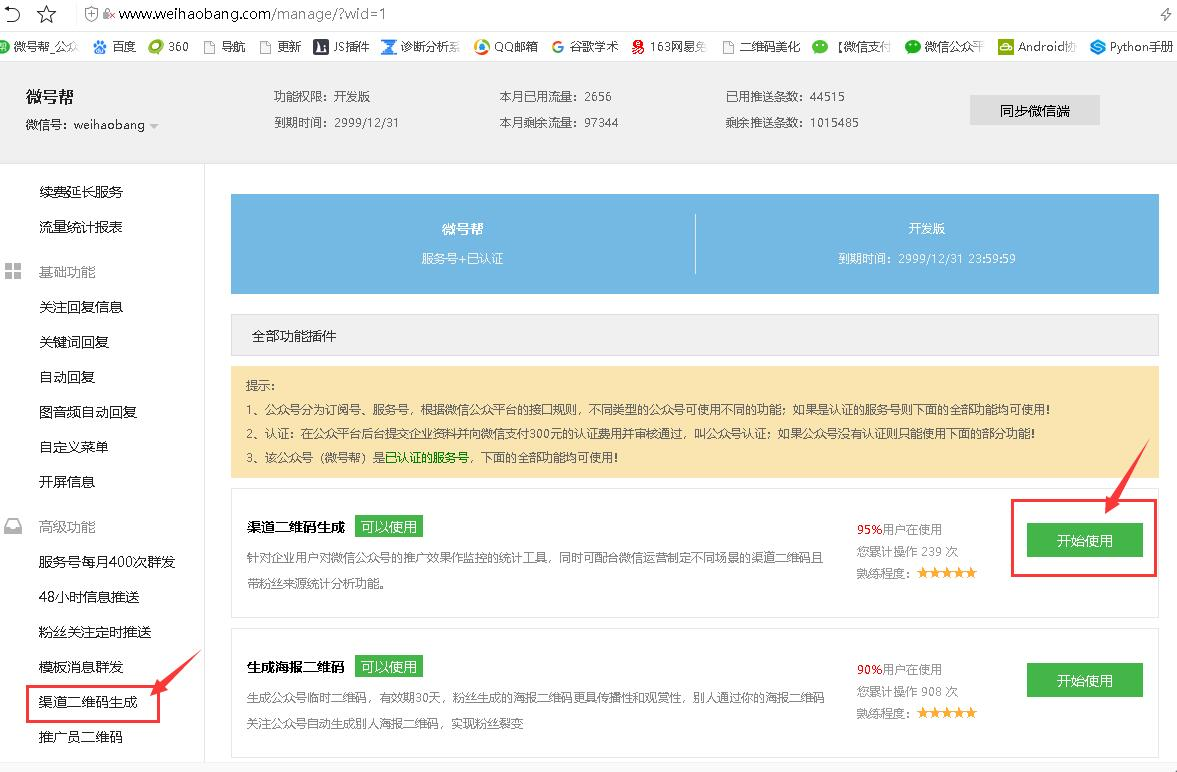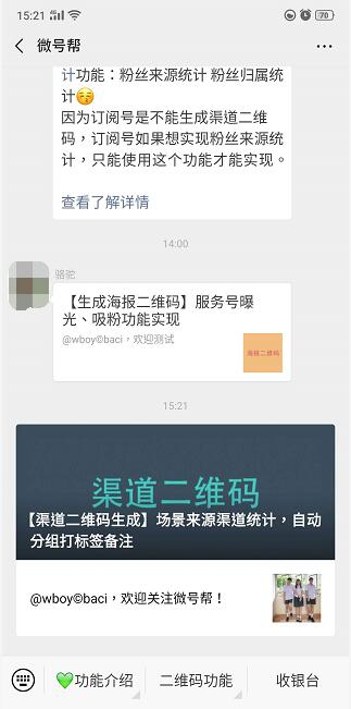 用户转化的话还要搭配使用微号帮平台服务号每月400次群发、模板消息群发、生成海报二维码等功能。