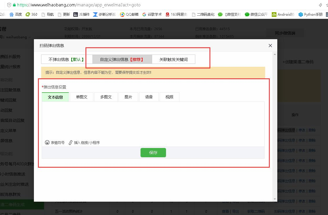 4、扫码弹出信息设置