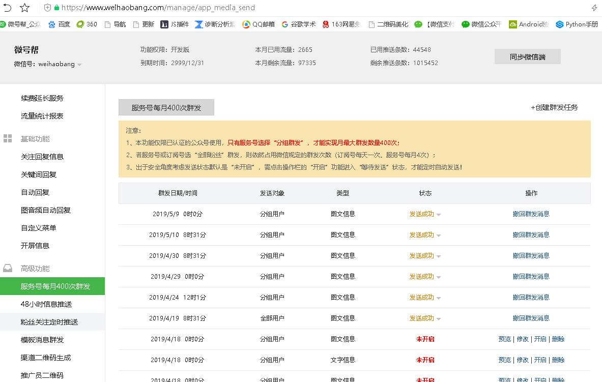 6、服务号每月400次群发