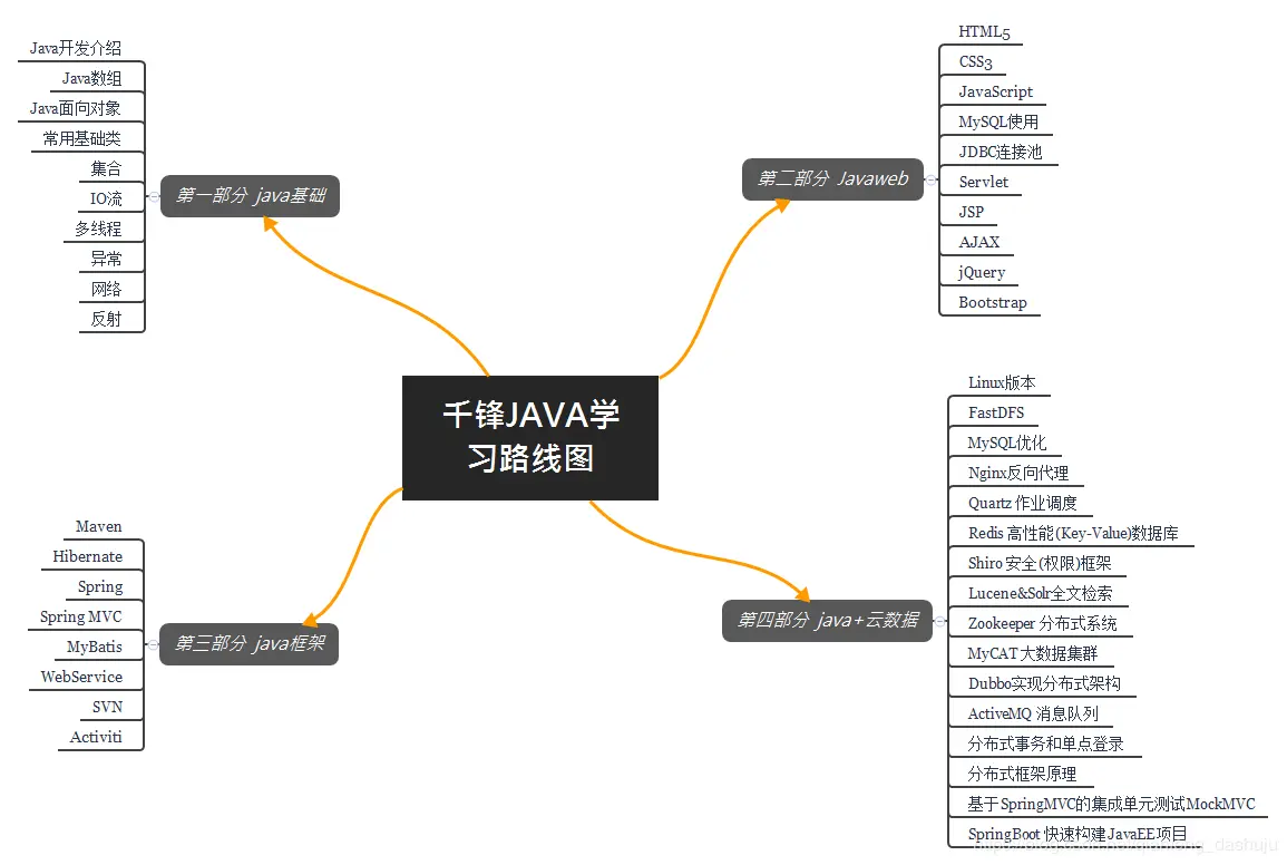 Java SE大致可分为以下几块内容: