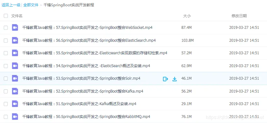 本视频教程包括了SpringBoot的基本使用及SpringBoot如何和各项技术整合。微服务和Spring Cloud实战:本套课程涉及Eureka、Feign、Ribbon、Hystrix、Turbine、Zuul、Configserver等知识点。