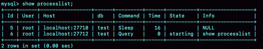 连接完成后,如果你没有后续的动作,这个连接就处于空闲状态,你可以在show processlist命令中看到它。文本中这个图是show processlist的结果,其中的Command列显示为“Sleep”的这一行,就表示现在系统里面有一个空闲连接。