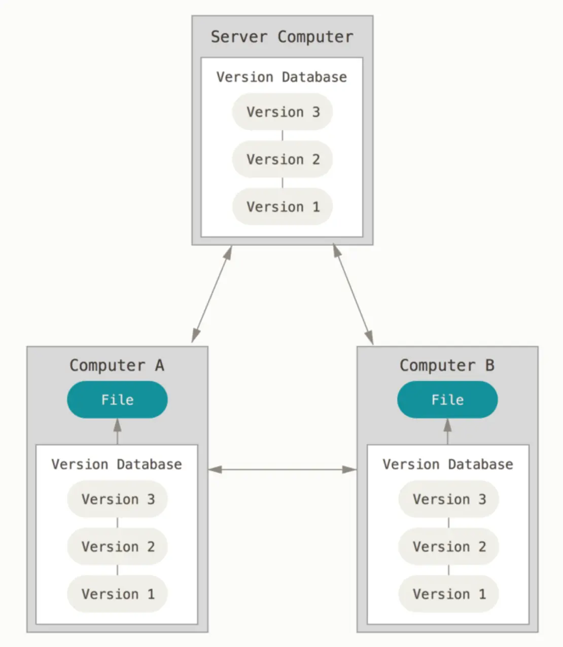 Git每一个终端都是一个仓库,客户端并不只提取最新版本的文件快照,而是把原始的代码仓库完整地镜像下来。每一次的提取操作,实际上都是一次对代码仓库的完整备份。
