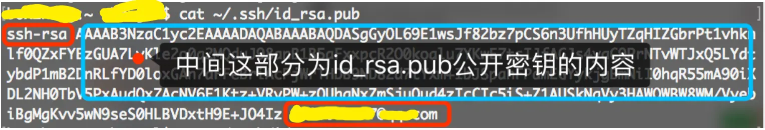 $ cat ~/.ssh/id_rsa.pub会得到以下形式的内容:
