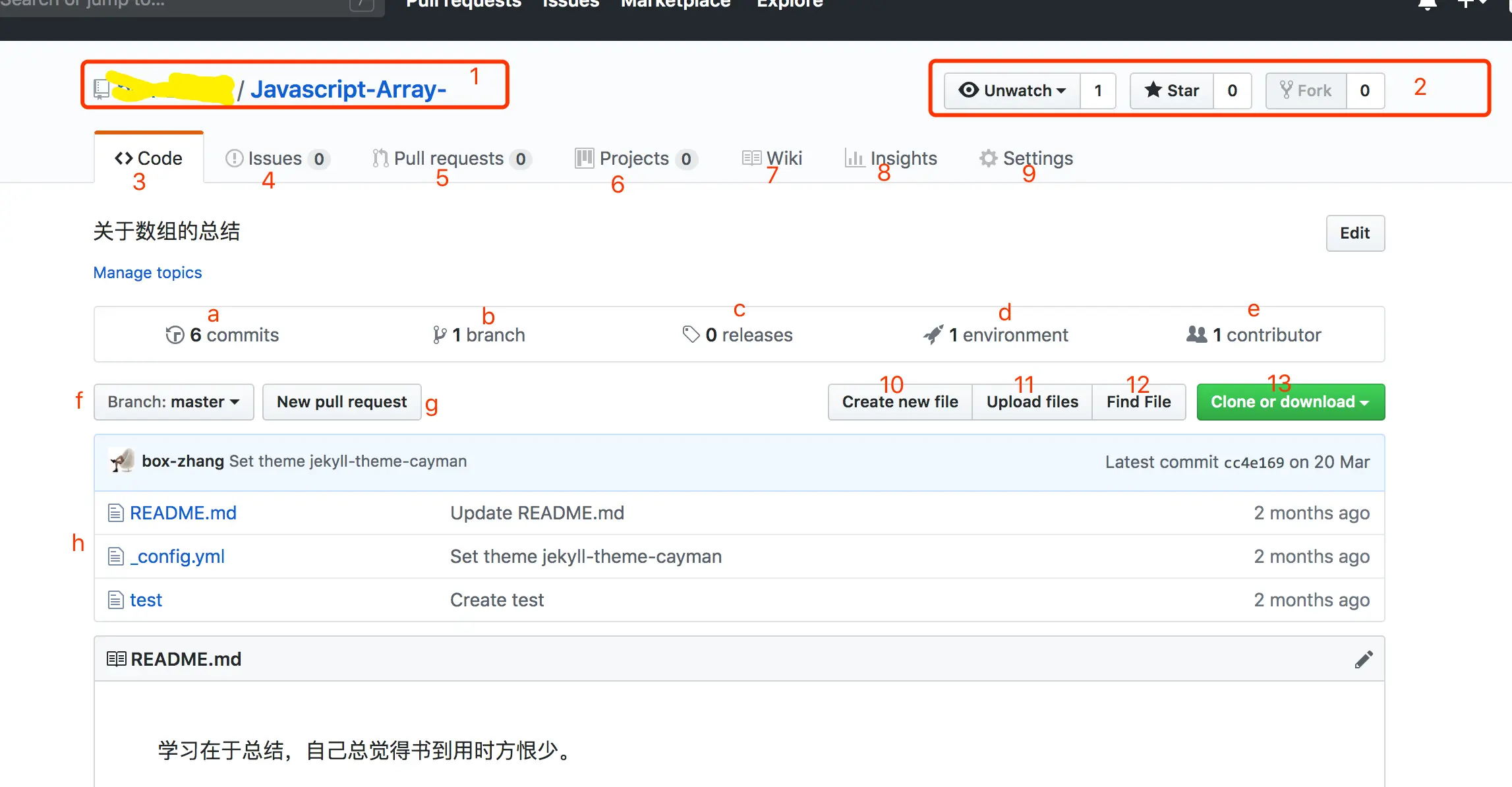 branches 查看仓库的分支列表。数字表示当前拥有的分支数。
