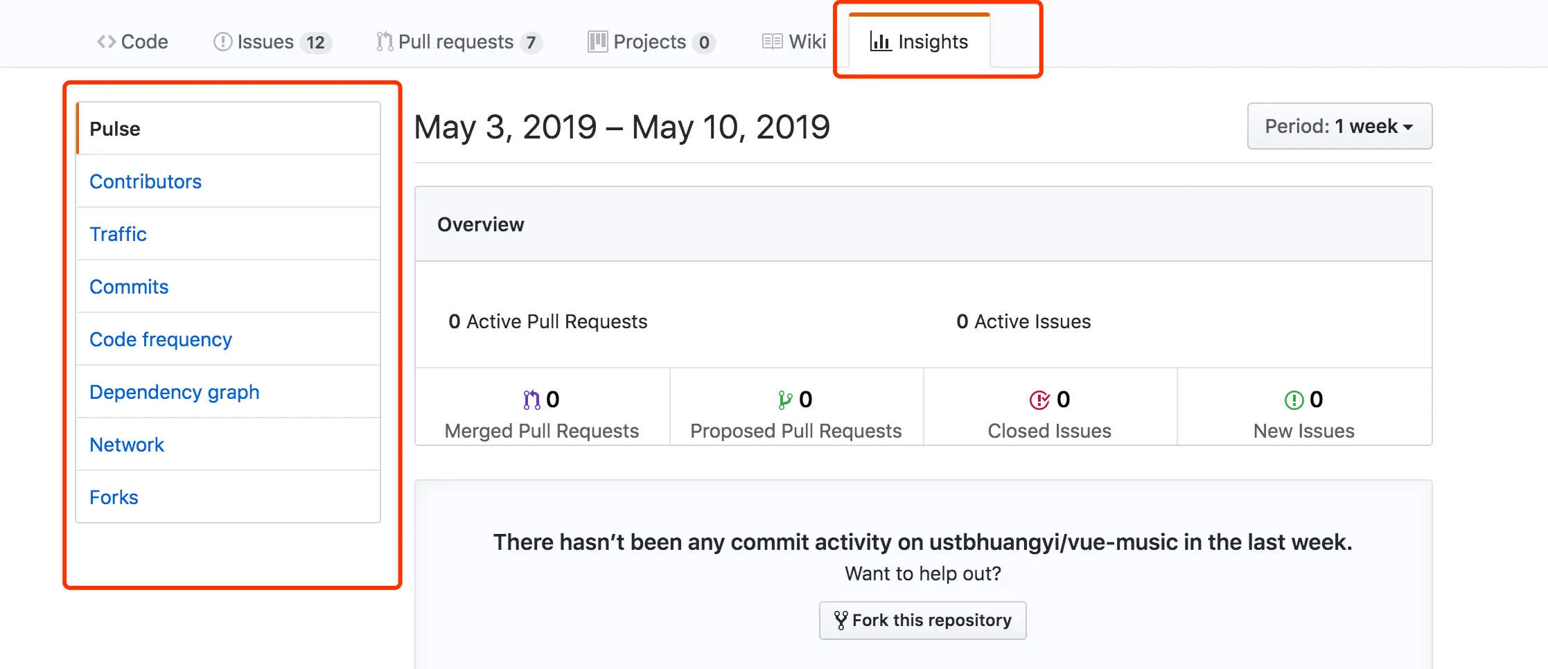- Pulse:体现该仓库软件开发活跃度的功能,近期该仓库创建了多少Pull Request 或 Issue,有多少人参与了这个仓库的开发等,都在这里一目了然