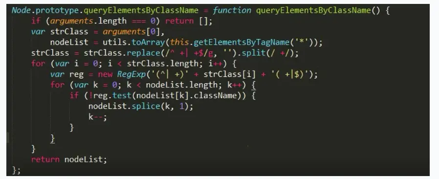 - 真实项目中 , 我们经常是基于样式类来给元素设置样式 , 所以在JS中 , 我们经常基于样式类来获取元素 , 但是此方法在IE6~8下不兼容 兼容处理方案参考