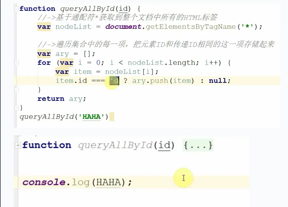 - 依次遍历这些元素标签对象 , 谁的ID等于HAHA , 我们就把谁存储起来即可