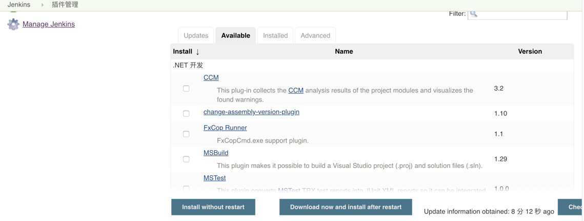 - 重启 Jenkins install-plugins 本质上做的事情就只是将插件从云端下载到 JENKINS_HOME 下的 plugins 目录中。要使安装的插件生效,还需要重启 Jenkins。