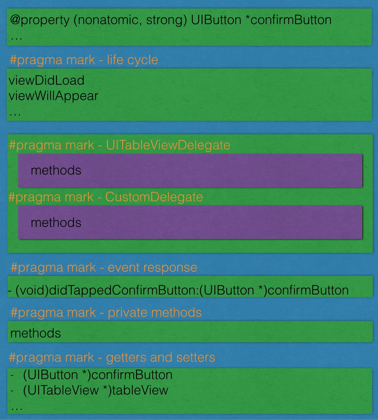 目前大部分项目并没有做好代码规范,代码布局乱得一塌糊涂,这里一个delegate那里一个getter,然后ViewController的代码一般都死长死长的,看了就让人头疼。