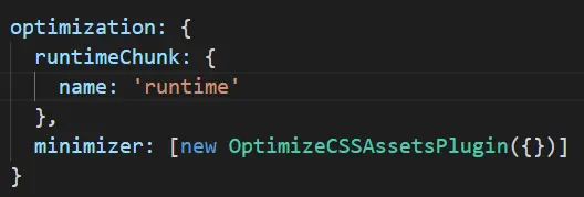 如果对应文件源代码没有改变,那么文件名称不会发生任何变化。但是一些老版本的webpack可能会发生没改变代码,但是hash值也发生变化的情况,这时候就要去加一个配置。在optimization中加一个runtimeChunk。