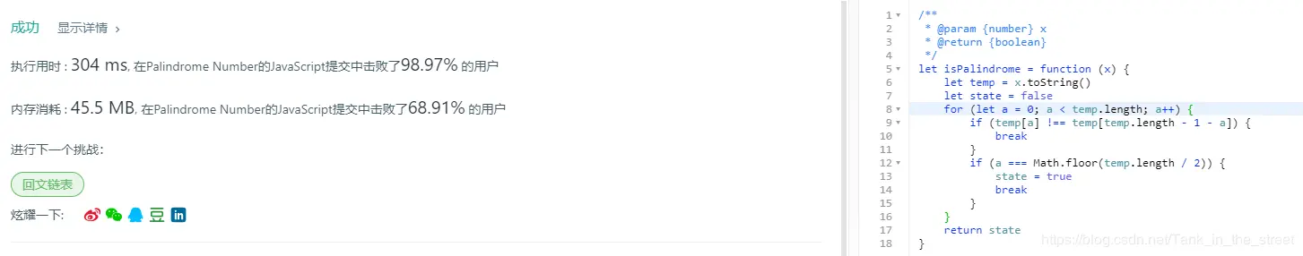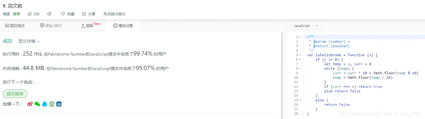 今天刷的题目是算法题里最简单的回文数,题目如下所示: