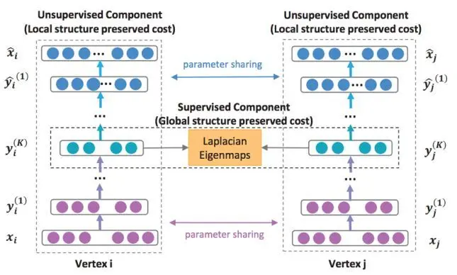 该方法认为在原始空间约相似的节点(使用边权衡量),映射到低维空间以后也会越相似。这里L是拉普拉斯矩阵,它是GCN的理论基石,非常重要。目标函数为:
