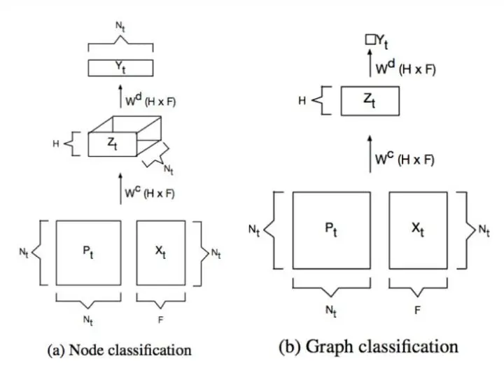DCNNs可以应用于两种任务,一个是节点分类,一个Graph分类, 我们先说节点分类任务。对于节点分类任务,卷积公式为:
