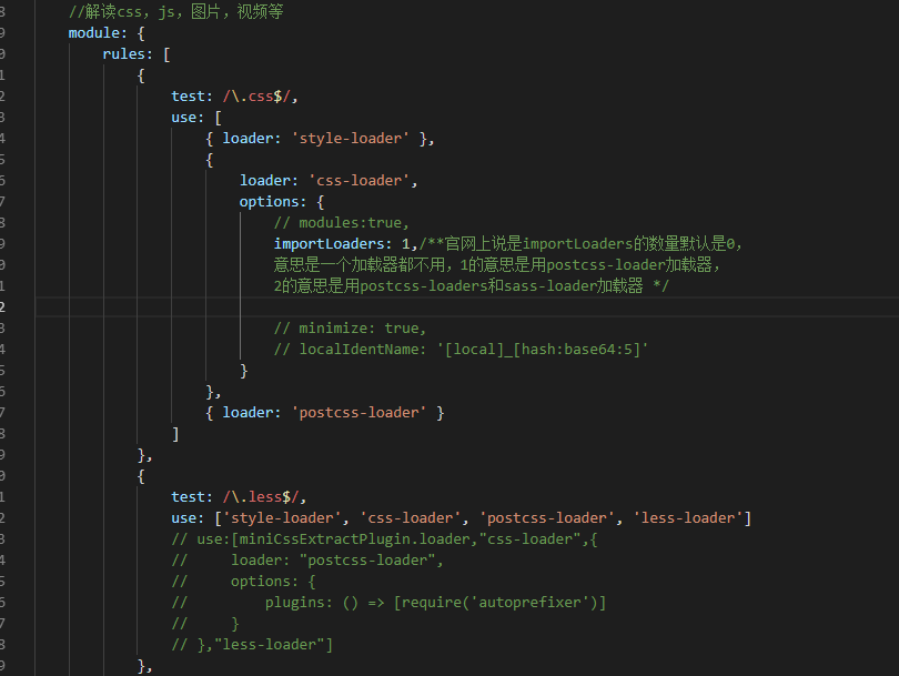 注意: 1.postcss-loader postcss插件是css自动添加样式兼容标识需要配置