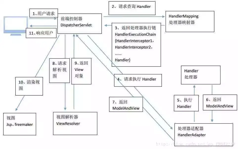 - 处理器映射器根据请求url找到具体的处理器,生成处理器对象及处理器拦截器(如果有则生成)一并返回给DispatcherServlet。