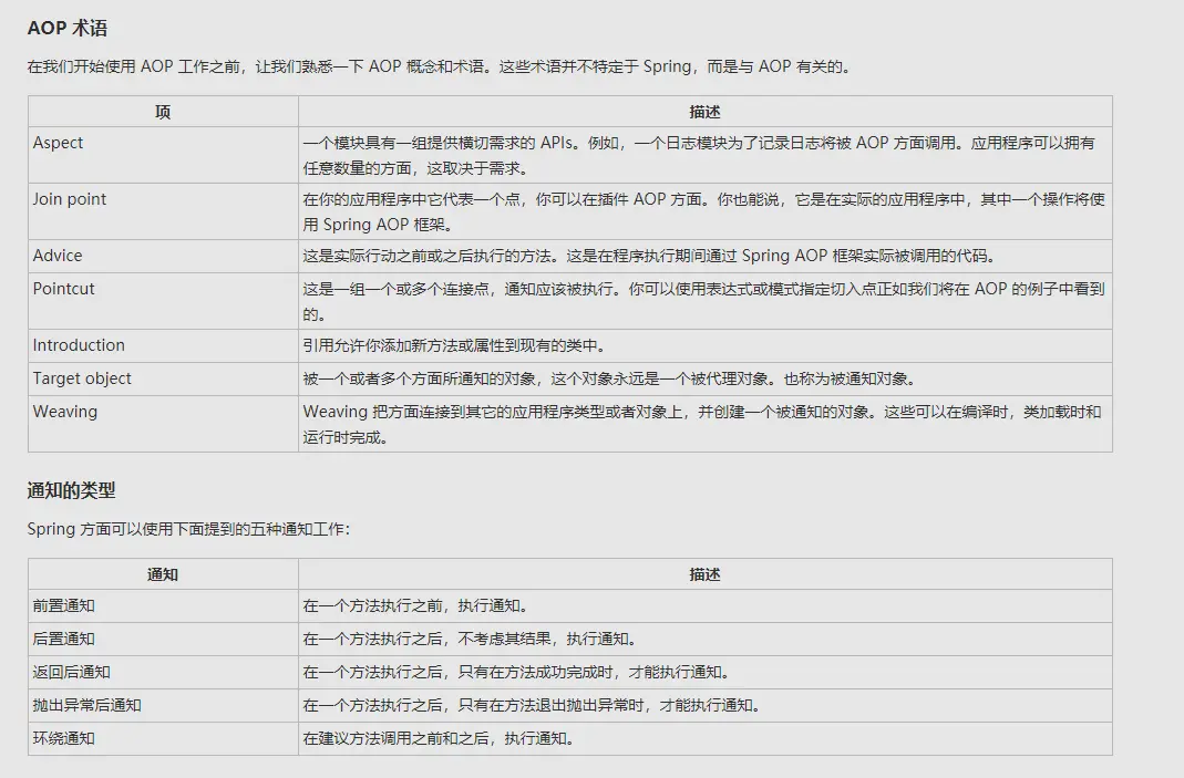 - 面向切面的编程(AOP):Spring支持面向切面的编程,并且把应用业务逻辑和系统服务分开。