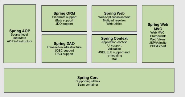 Web上下文模块建立在应用程序上下文模块之上,为基于Web的应用程序提供了上下文。Web层使用Web层框架,可选的,可以是Spring自己的MVC框架,或者提供的Web框架,如Struts、Webwork、tapestry和jsf。
