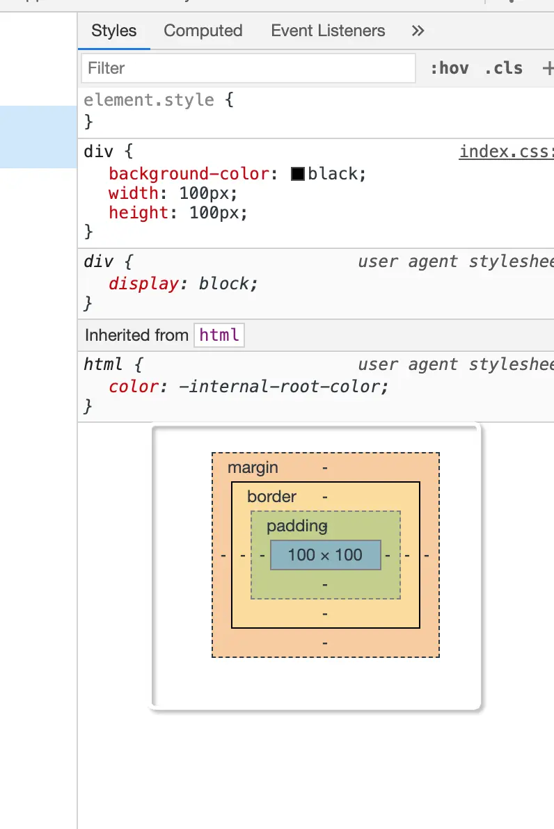 最下面的层级是css所规定的(或者是元素默认)的宽度和高度