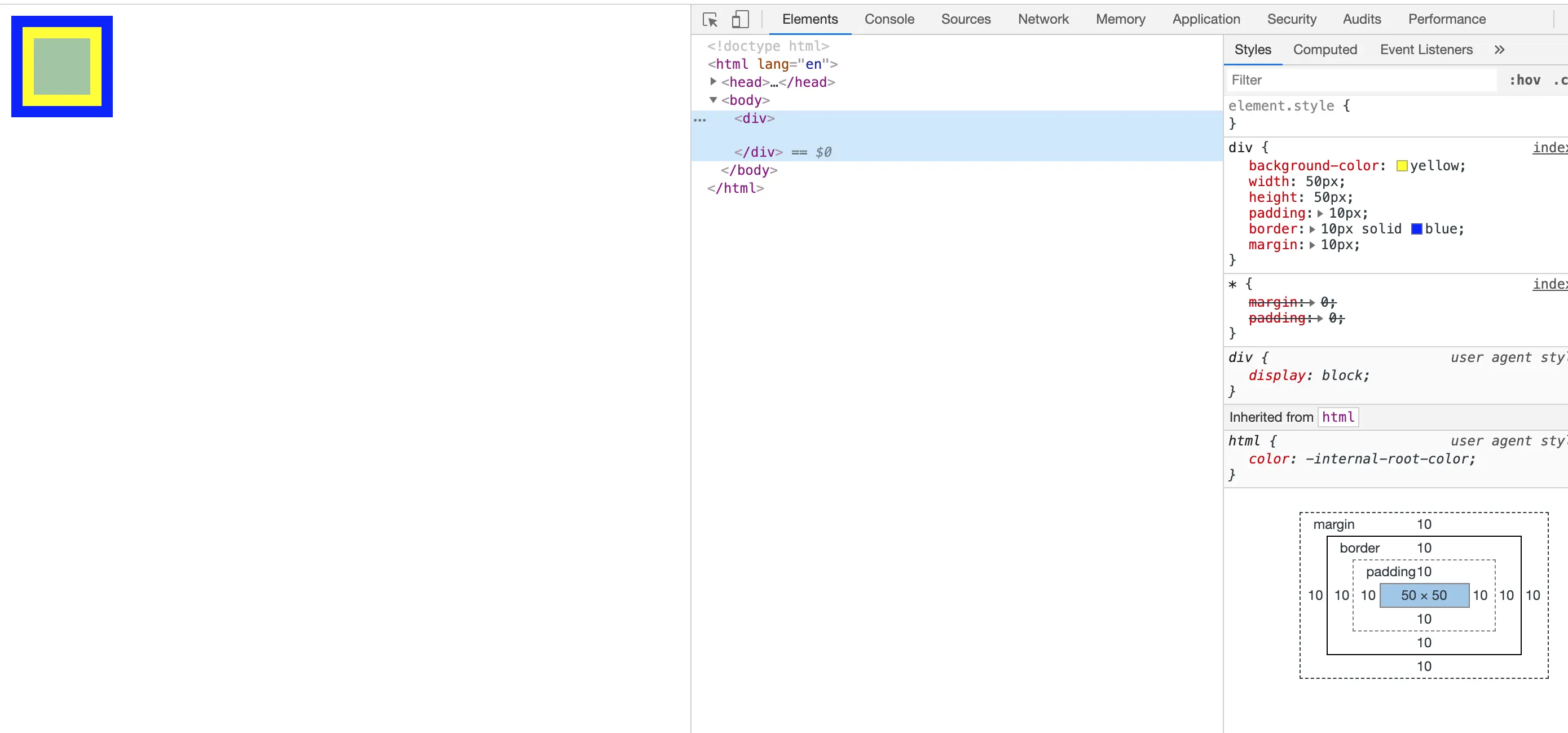 第一步我们来认识一下盒模型并且简单的了解一下效果