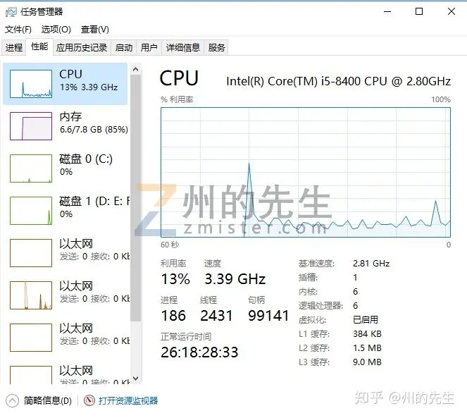 在Windows操作系统的电脑上,我们通过“任务管理器”可以很方便地查看到自己电脑CPU实时的使用情况,并且CPU的占用率还会通过一个实时的图形区域显示出来,如下图所示: