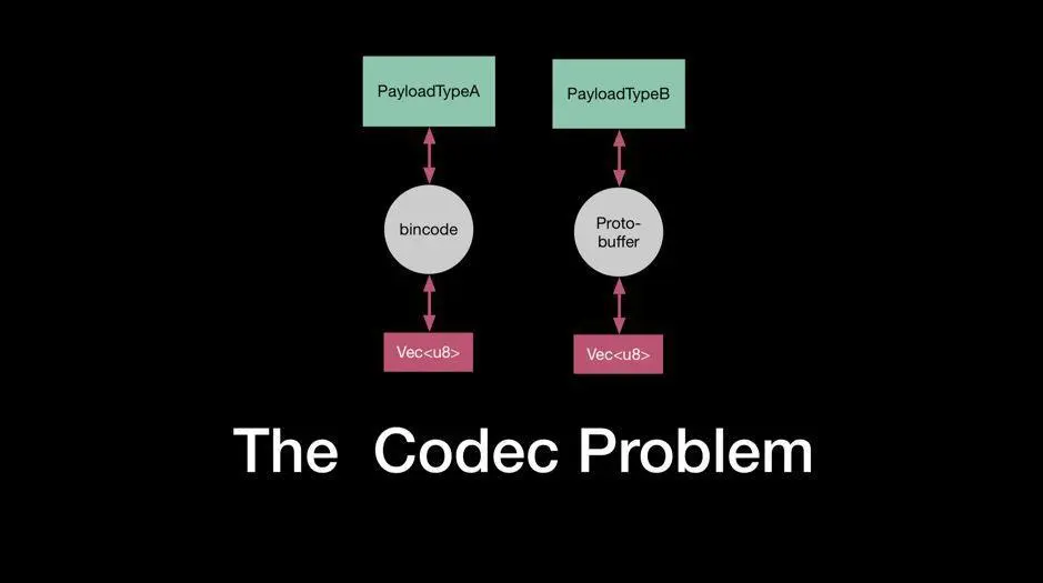 图 16 中有一个特殊的问题。如果某个消息是有多种编码模式,比如 Serde 有一个很流行的编码叫 bincode(把一个 struct 编码成一个 Buffer),当然也有很多人也会用 Proto-buffer,那么如果 Message 是来自不同的编码模式,要怎么用同样的一种 API 去解码不同的消息呢?