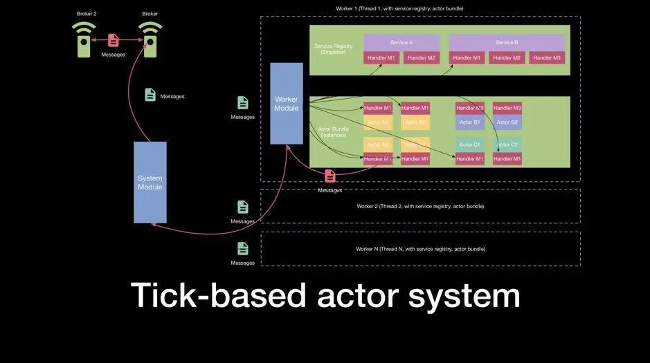 下面来介绍一下 Tick-based actor system,就是我们怎么在一个基于 Tokio 的 actor system 上面实现Tick,大家都知道 Tokio 是异步的架构,但是我们想做成基于 Tick 的。