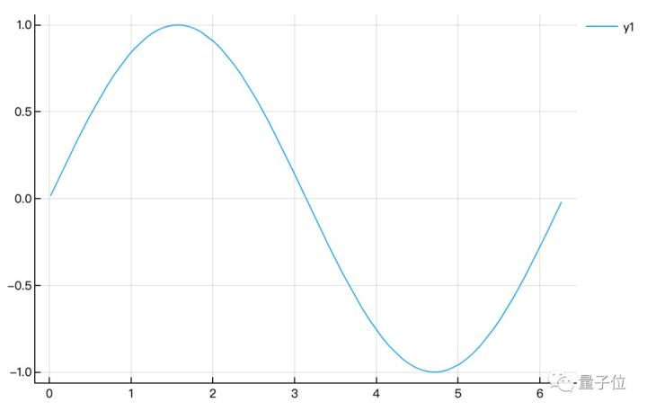 Pkg.add("ImplicitEquations")安装完以上的扩展包,就可以绘制函数图像了。我们简单绘制0到2π范围的正弦函数图像: